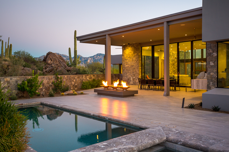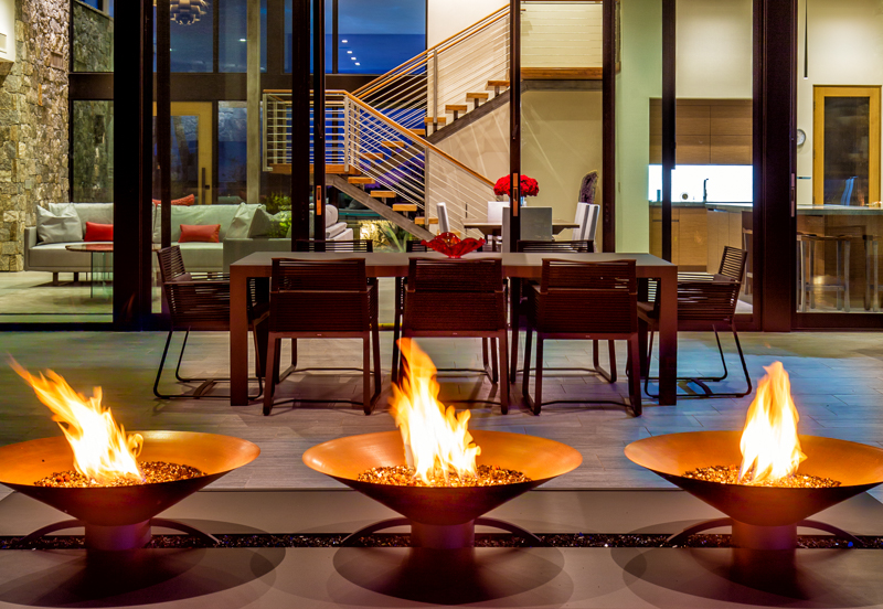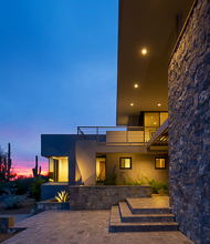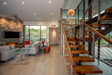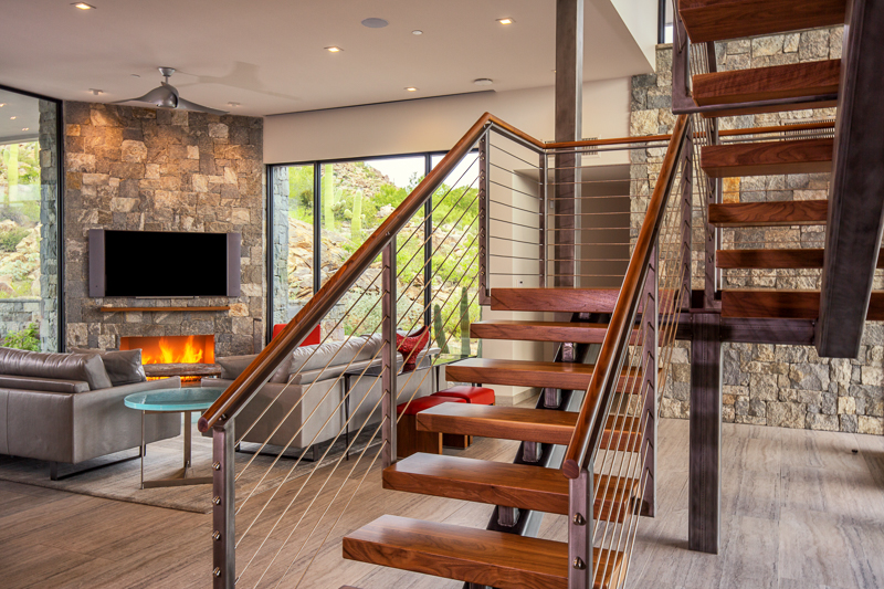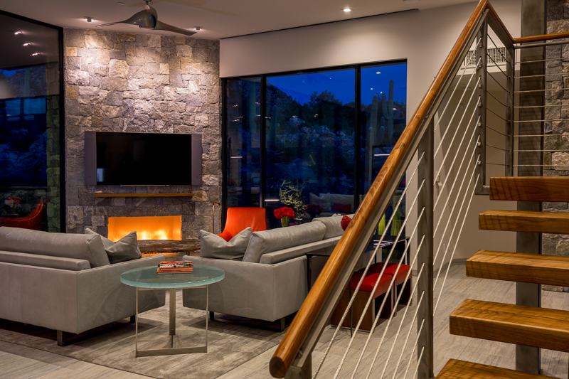 A contemporary custom residence built by Tom Mancuso, designed by Ron Robinette Architects and Interior Design by Lori Carroll and Associates. The home features steel and masonry construction, an open floor plan, amazing steel and walnut stairs going to the second story office with deck. All of the finest finishes available.